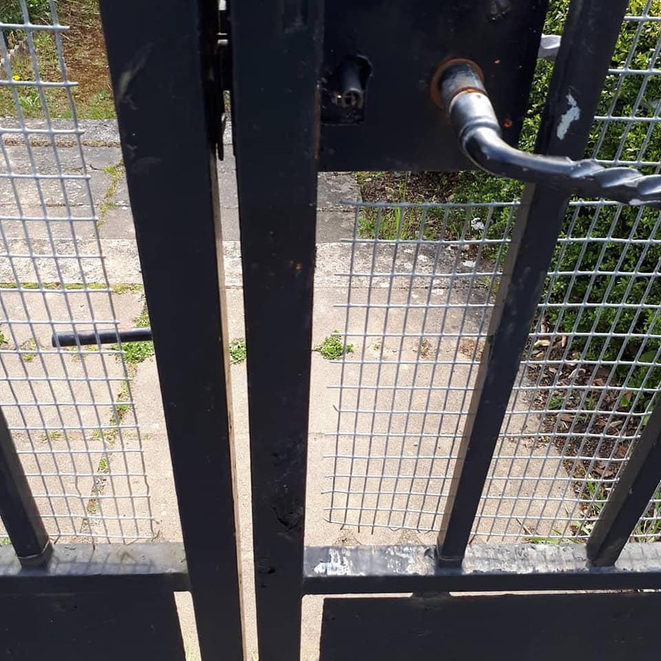 J’ai pris aussi le portail en photo. J’ai pris cette barre qui permet à l’une des parties du portail de rester fermer, cette barre qu’on rabattait sur le pan qui s’ouvrait, comme ça, si quelqu’un voulait entrer, il était obligé de tourner cette barre de l’autre côté et ça grinçait et on l’entendait arriver !